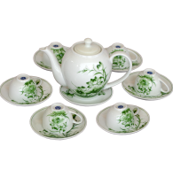 Bộ ấm chén dáng khum men trứng vẽ hoa sen xanh